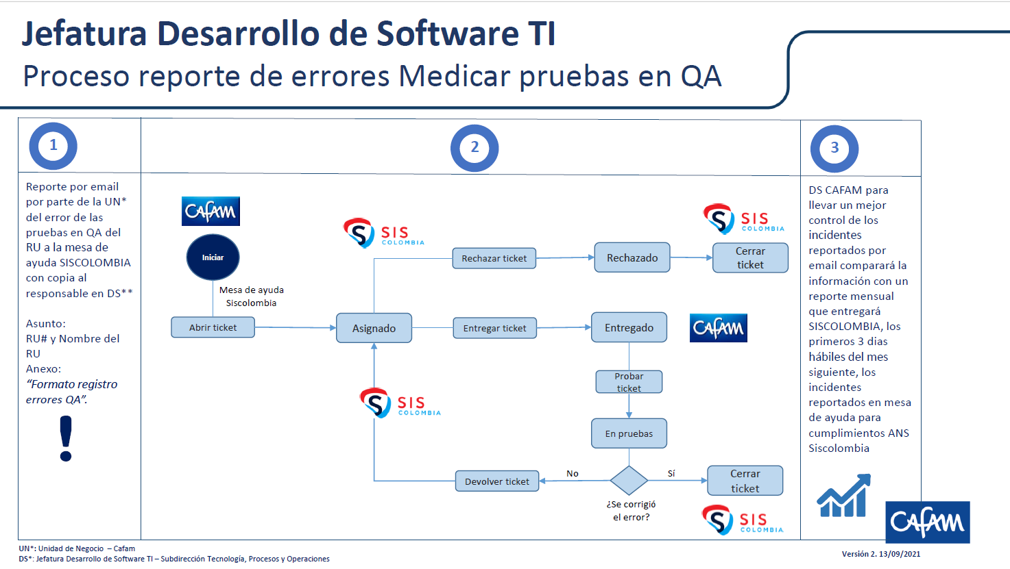 Flujo del proceso para reportar los incidentes de QA y el formato de incidentes que el cliente debe enviar adjunto en la solicitud.