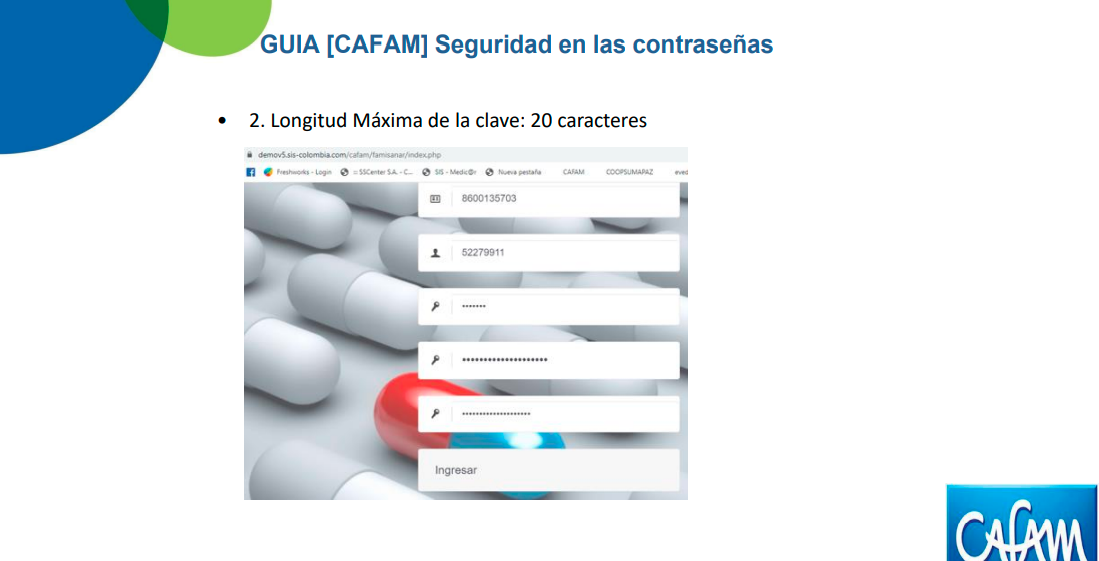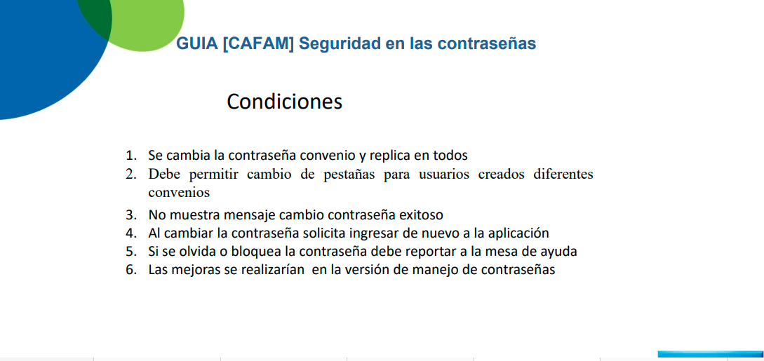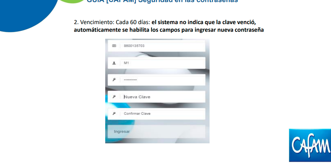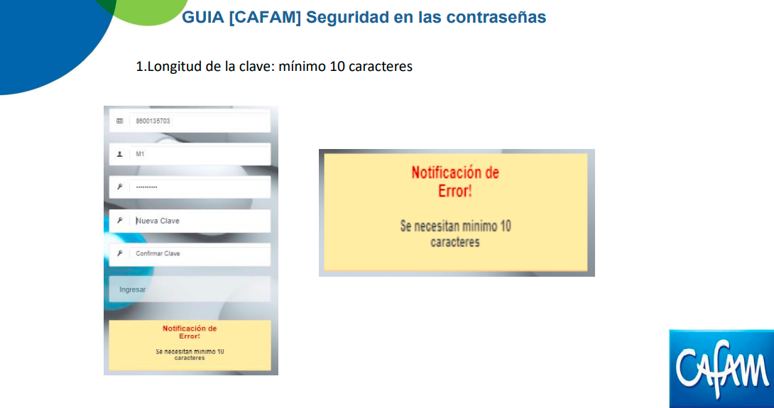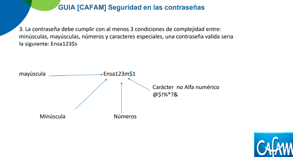 Criterios y aspectos a tener en cuenta en el tema de seguridad en las contraseñas con CAFAM