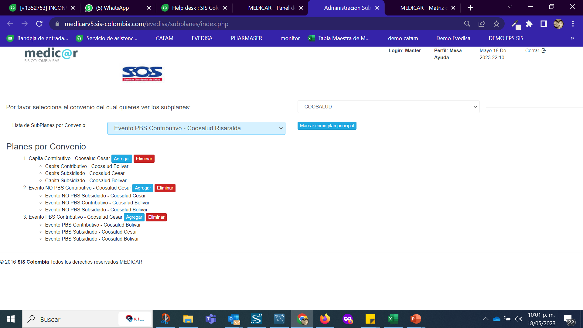 Ruta: Convenio Ocgn - Utilitarios - Administración de subplanes para cada convenio.